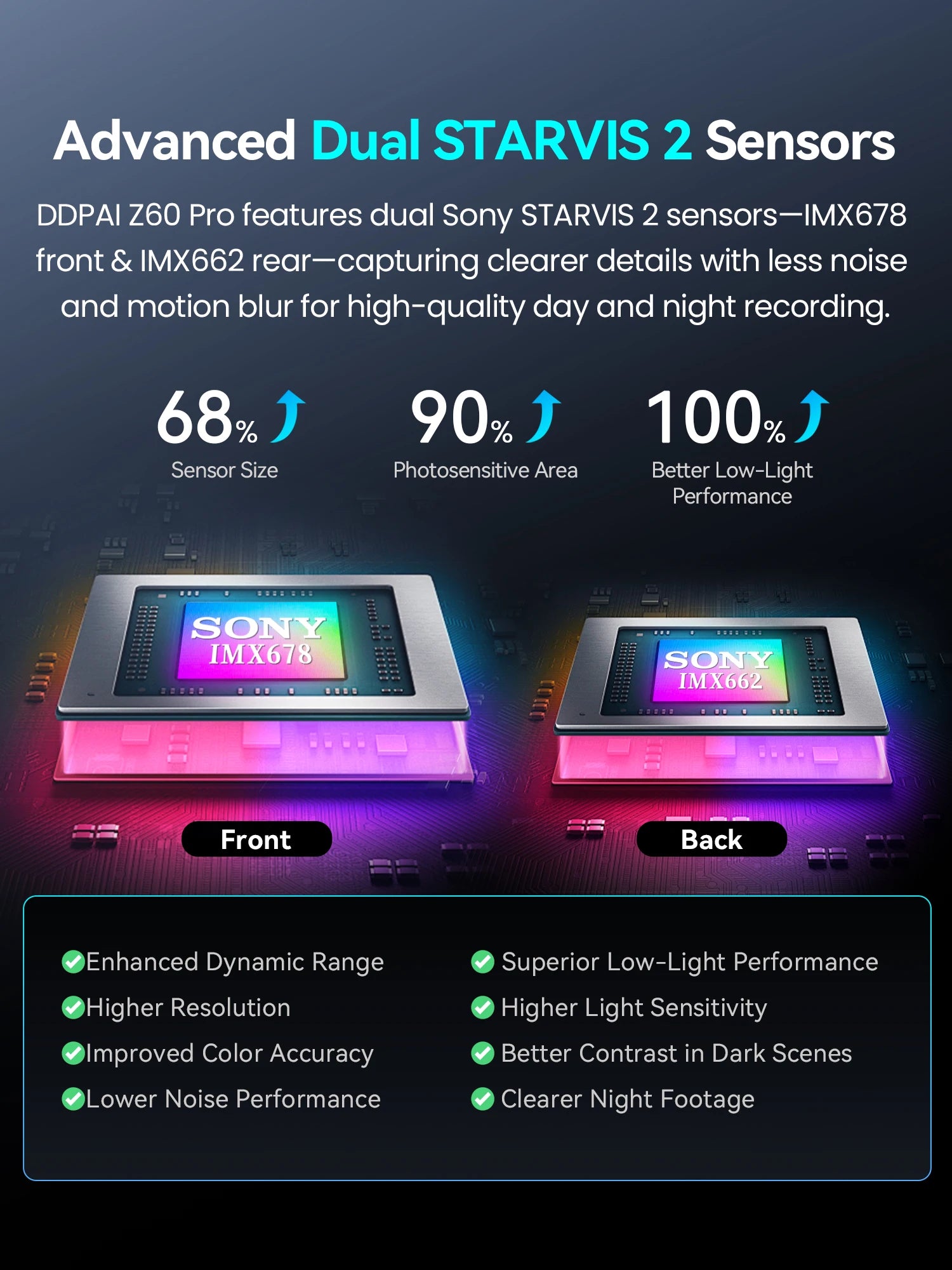 2025 New DDPAI 4K Dash Cam Z60 Pro Support Front and Rear Car Camera SONY STARVIS2 678 Sensor 5GHz Wi-Fi GPS ADAS Car DVR