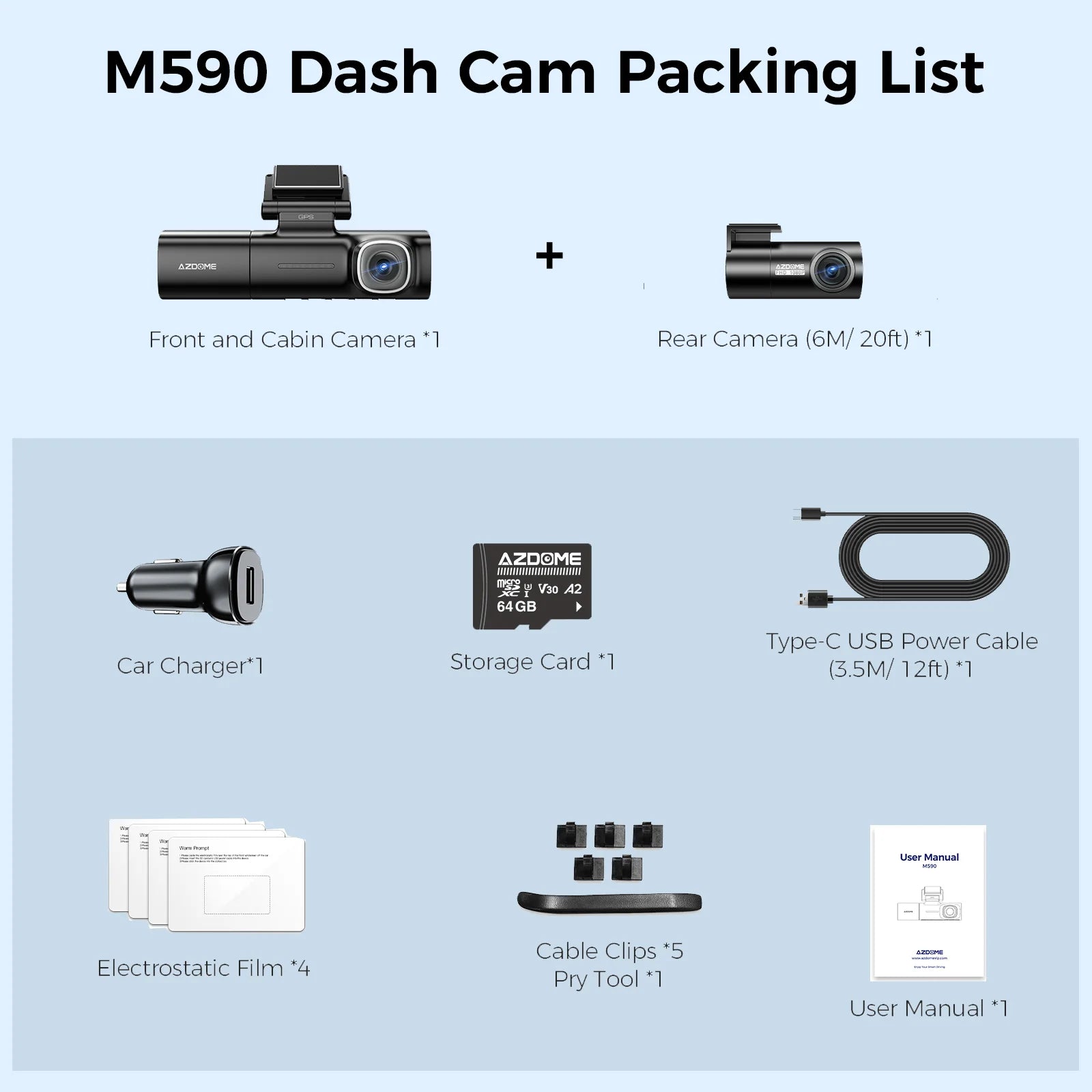 AZDOME Dash Cam M590 4K WDR Built-in GPS Wifi Car DVR 3-channel Record Loop Recording 24H Parking Monitor Support Rear Cam