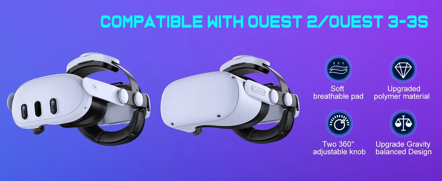 - 【Compatible with New Meta Quest 3S/Quest 3/Quest 2】We upgraded the vr head strap, which comes with two sets of connection fasteners that can compatible with Oculus Quest 3/Quest 2. You can choose the appropriate connection fasteners for Quest 3 strap/Quest 2 strap.This ergonomic design head strap for Meta Quest 3 effectively reduces facial pressure and immerse you in the virtual world.