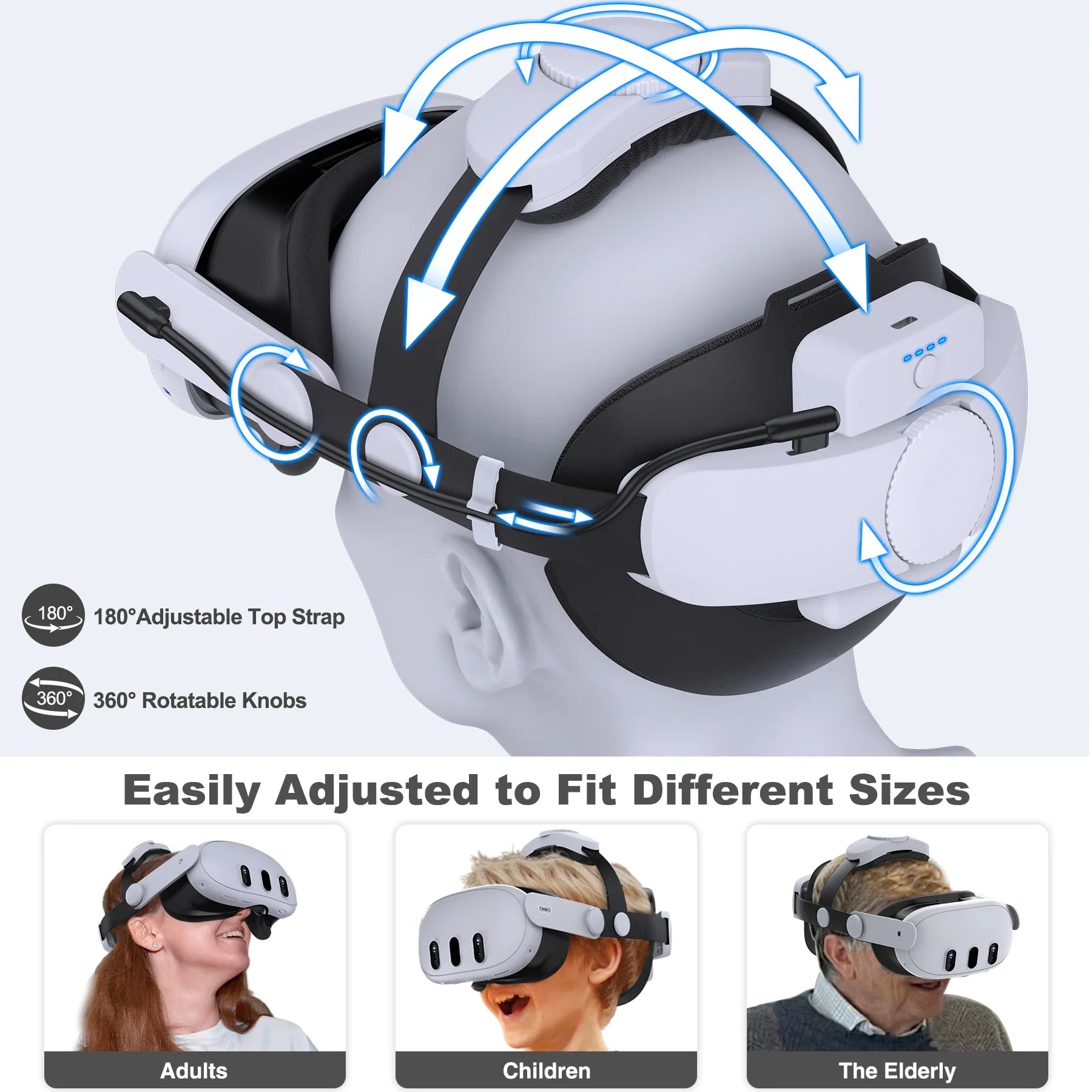 - 【Adjustable Elite Strap Replacement】With two adjustbale knobs on the top and back,the head strap can easily adjusted to fit different head circumference.The precise size adjustment of the Meta Quest 3/Quest 2 Elite strap allows both adults and children to wear it without burden.In addition, the top strap can be 180° adjusted to the most comfortable position, which will reduce most of the weight of the vr headset on your face and allow you to play for long periods of time.